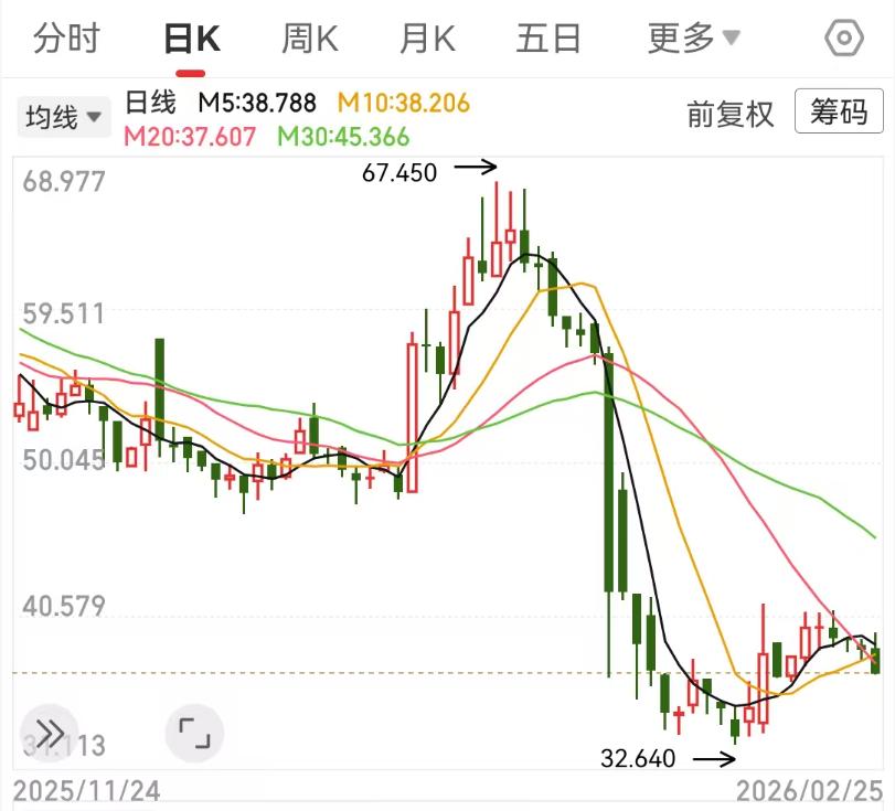 截至2月25日收盘,九方智投股价报收于37港元/股,当日下跌4%。与2026年以来67.45港元/股的高点相比,股价已近乎腰斩。