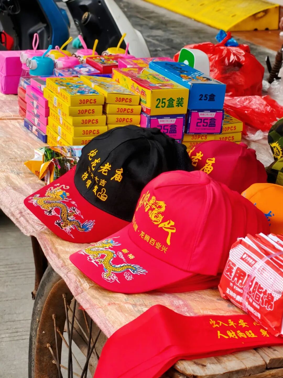 △炮龙炮、棉球、百家宴上派发的红布都能在路边的炮仗摊上买到。(图/Kyla 摄)