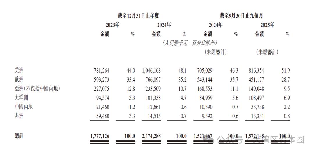 从收入结构看,这一模式确实奏效。报告期内,美洲收入分别为7.81亿元、10.46亿元、8.16亿元,占比持续提升;欧洲收入分别为5.93亿元、7.66亿元、4.51亿元,占比稳定在三成左右。几乎全部营收来自境外。