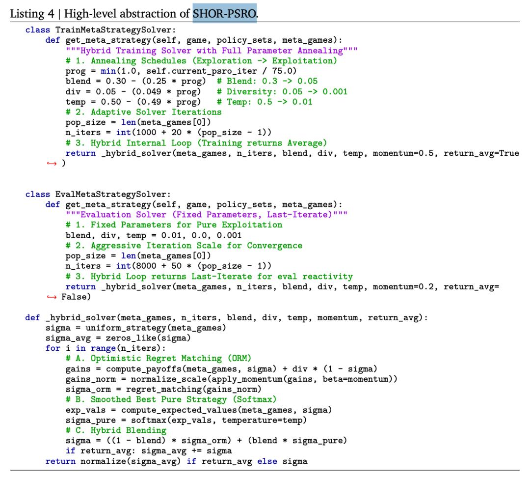 「我们的结果表明,自动发现的算法不对称性——特别是那些管理遗憾缩放和动态混合调度的机制——能够产生对人类直觉而言难以捉摸、但在实践中极其有效的求解器。」