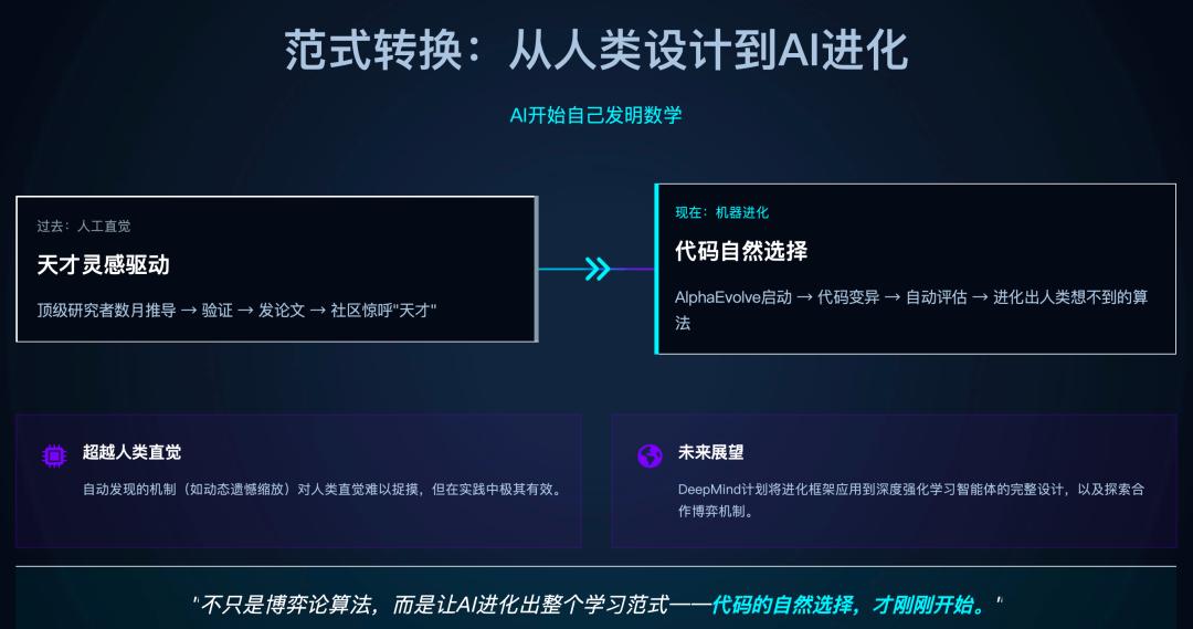 所以这篇论文真正在说的是:AI已经不只是在执行人类写的算法了,它开始自己发明算法——而且发明得比人类还好。