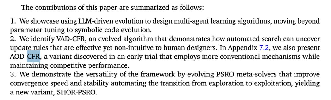 LLM理解代码的语义,能做出「有意义的变异」——不是随机翻转一个比特,而是「把这个线性调度改成指数调度」「给正遗憾加一个增强系数」「在前500次迭代跳过策略累积」。