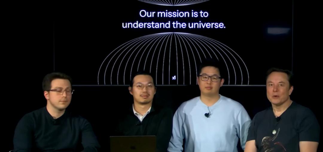 ▲从左到右分别为:Igor Babuschkin、Jimmy Ba、吴宇怀、Elon Musk(来源:YouTube)