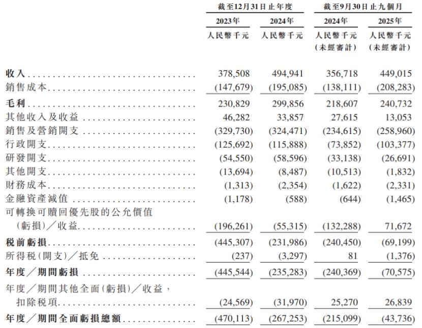 具体来看,2023年、2024年和2025年1-9月,再惠的收入分别约3.79亿元、4.95亿元、4.49亿元,毛利率分别为61%、60.6%、53.6%,对应的净亏损分别约4.46亿元、2.35亿元、0.71亿元,两年多亏损超7亿元。