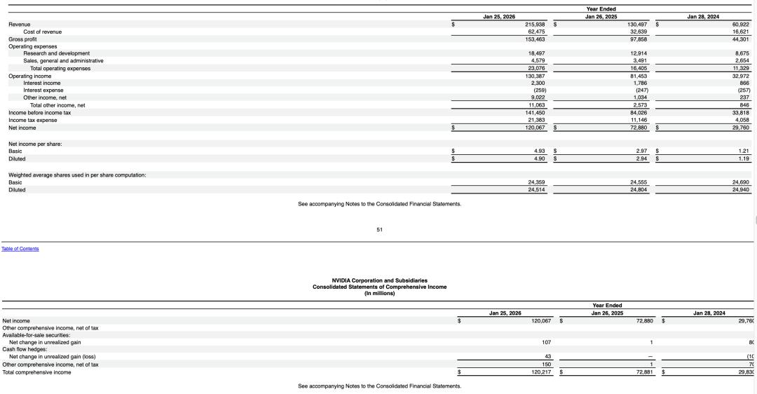 英伟达 2026 财年的主要财务指标|图片来源:财报截图