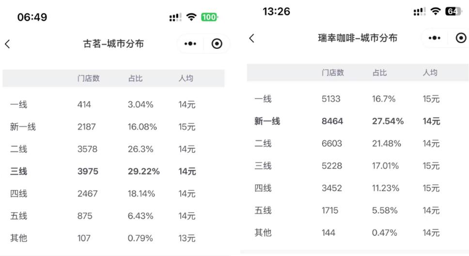 面对这些约束,大量品牌纷纷向更下沉的乡镇市场寻找增量。窄门餐饮数据显示:瑞幸在营30760家门店中,五线城市占比5.58%;古茗在营13603家门店中,五线城市占比6.43%。当下沉市场品牌密度持续提升,“同款供给”成为常态,春节这类峰值场景便会更频繁地制造爆单与排队。