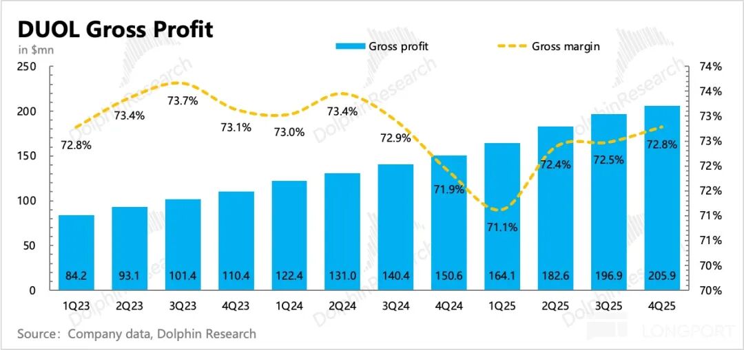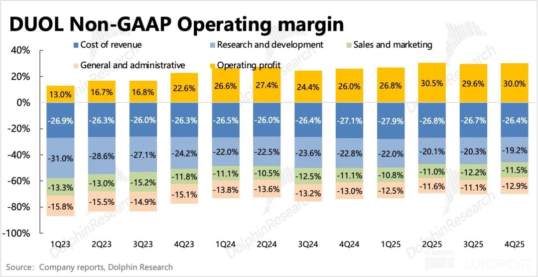管理层给了个相对清晰的 26 年盈利指引:由于要持续投入开发 AI 功能,获客推广和高曝光的品牌营销支出,预计 2026 年毛利率、经营利润(EBITDA)要相比 25 年分别下降 2-3pct 和 4-5pct。上半年还会因为团队扩张带来更多的股权激励发放,因此股份稀释影响会有所增加至 3-4%,下半年才会恢复到 2%。