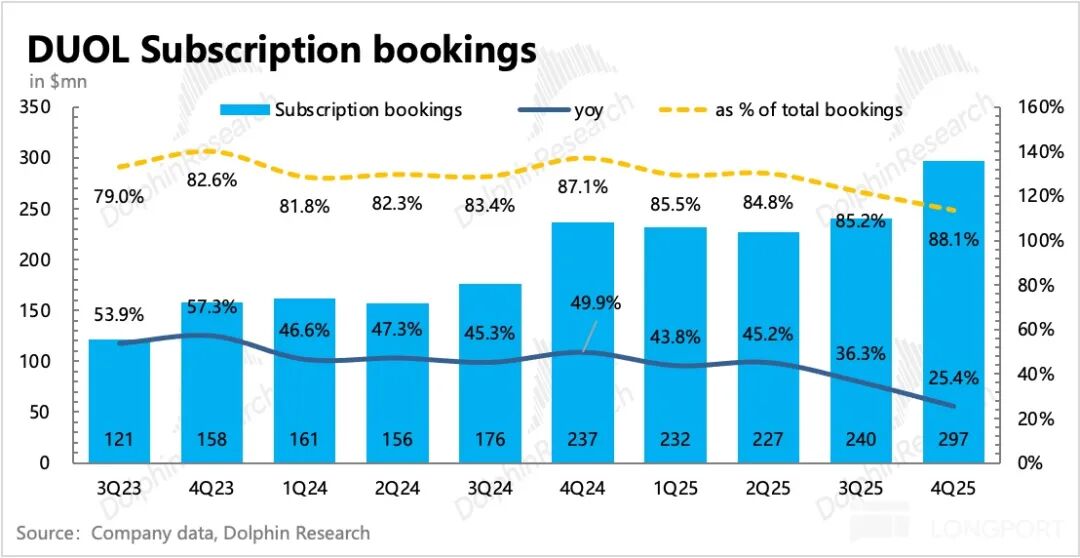虽说 Duolingo 管理层一贯给指引比较谨慎,这次应该也包含一些刻意的谨慎,但问题是 10%-12% 的短期增速目标显然已经不属于高成长。