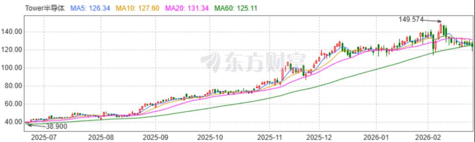 Tower从25年7月-26年2月的股价走势