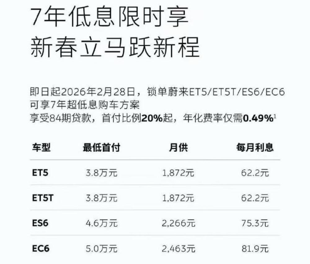 ▲蔚来品牌推出2月限时金融方案