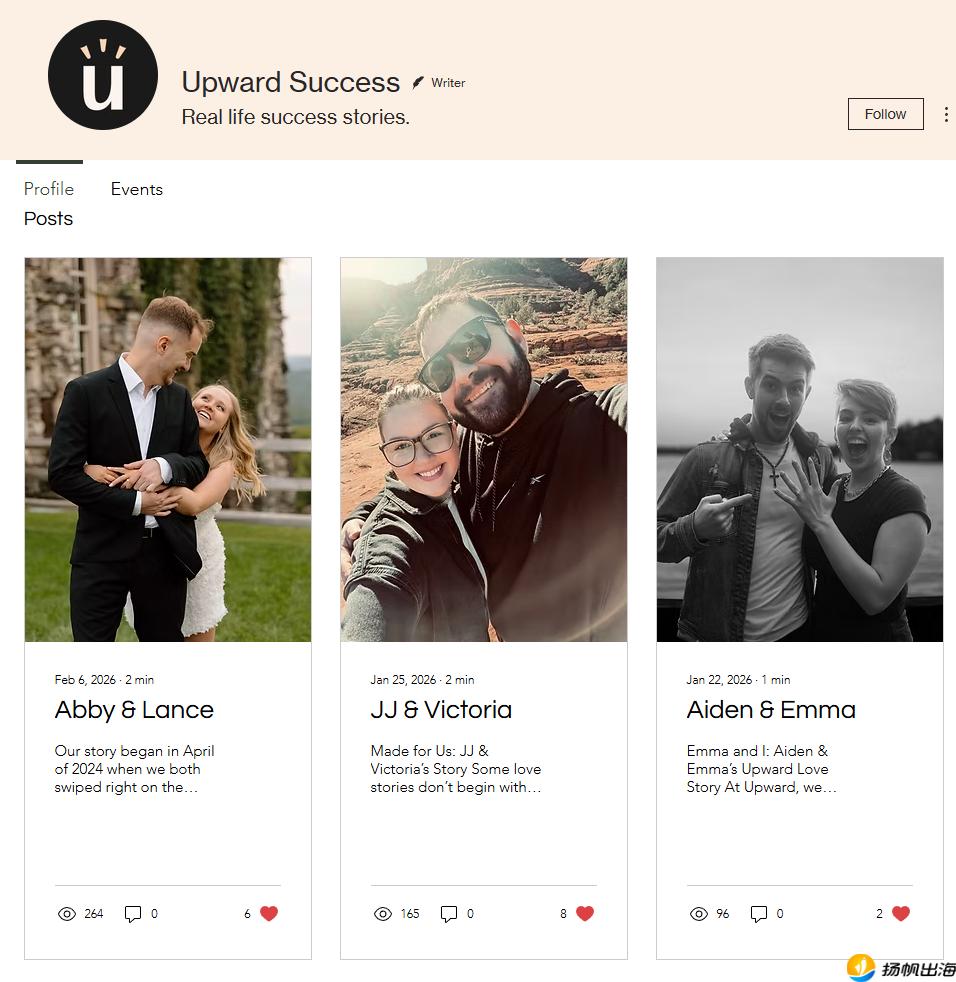 从Upward的用户反馈中可以发现,“高成功率”是其很有代表性的一个特点,即在应用中相识,在现实生活中能够成为伴侣或长期朋友。随着越来越多的用户“匹配”成功,Upward以此为卖点建立了一个故事分享社区,鼓励用户自发分享在应用中遇到另一半的故事。