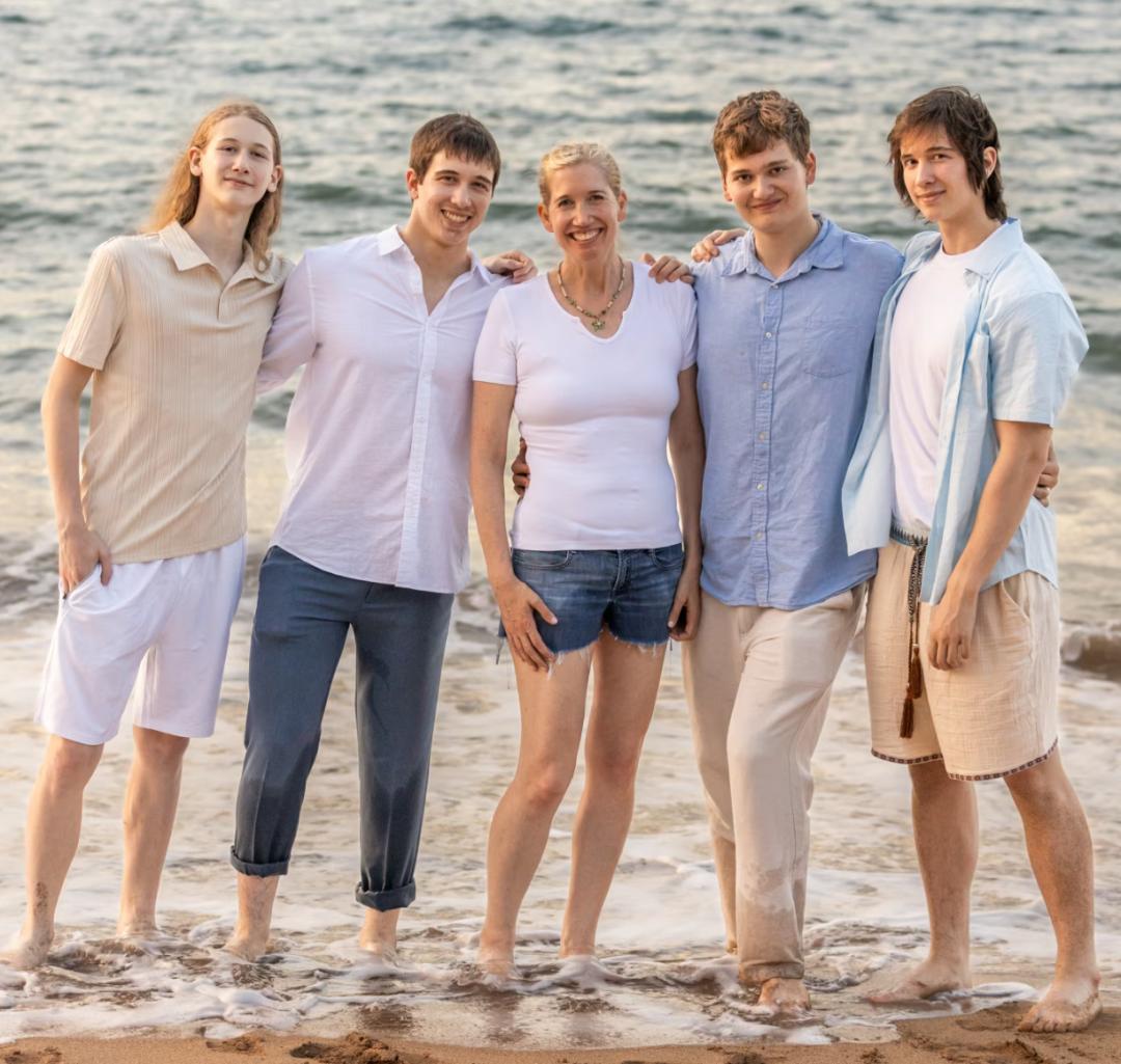 Teevan 有四个男孩,中间两个是同卵双胞胎。她开玩笑说自己在做 A/B 测试,但其实并没有真的给他们两套不同建议。