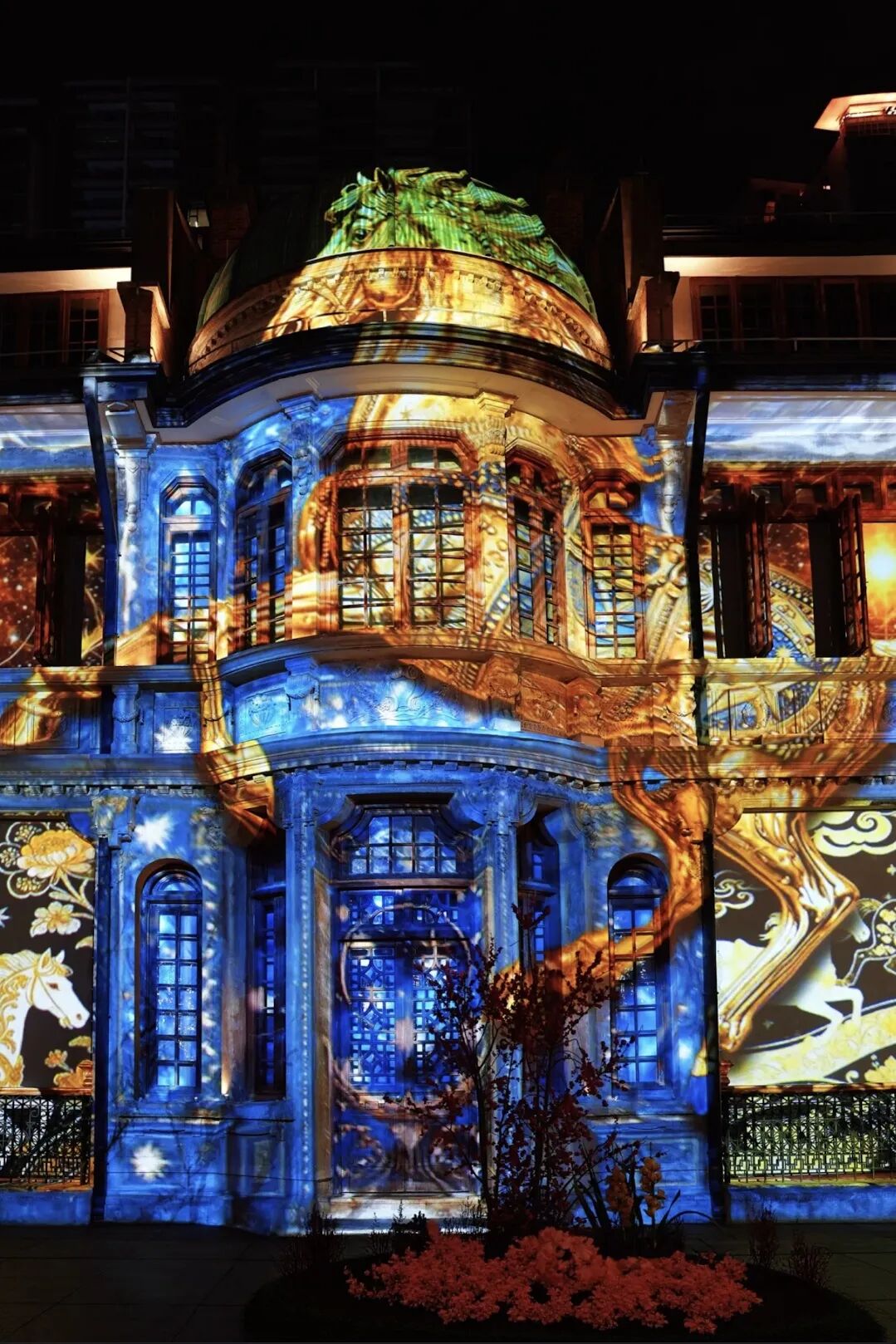 它没有圈地卖票,而是将徐悲鸿的艺术经典,通过数字光影转移到石库门建筑立面上。