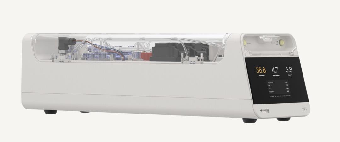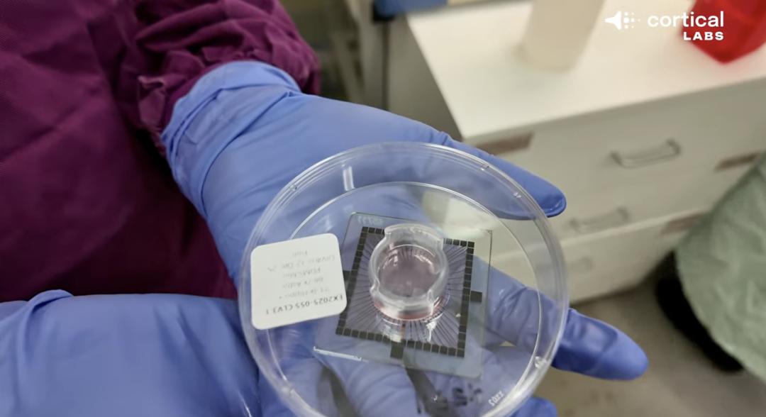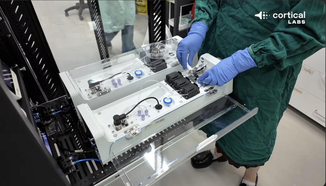 这次演示运行在Cortical Labs去年发布的CL1上,官方称其为”世界首台可部署代码的生物计算机”。这台设备的核心是一块多电极阵列芯片,上面生长着约20万个活体人类神经元。