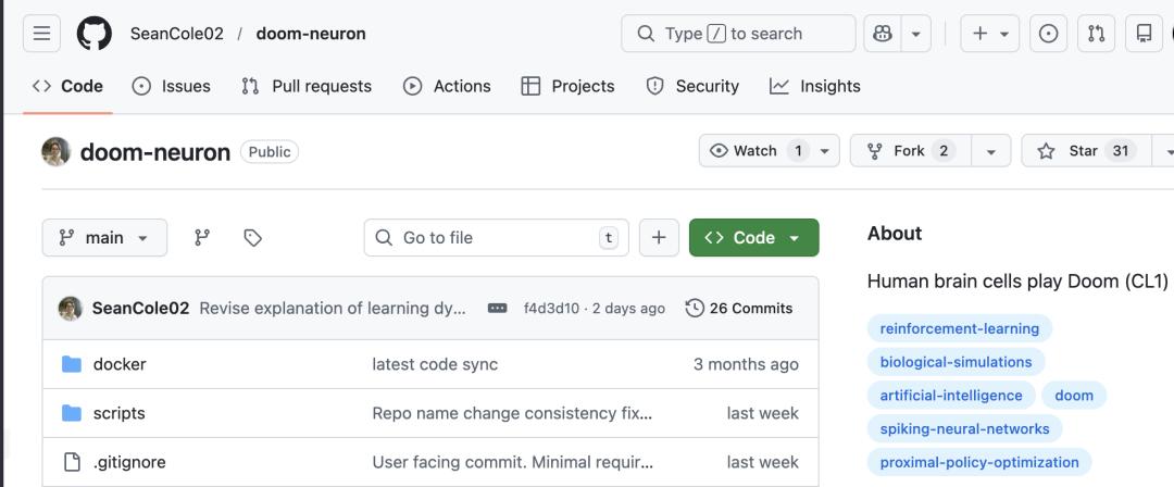 这一次是独立开发者Sean Cole,通过Cortical Labs开放的云平台API,用不到一周时间就完成了Doom的适配,代码已开源。