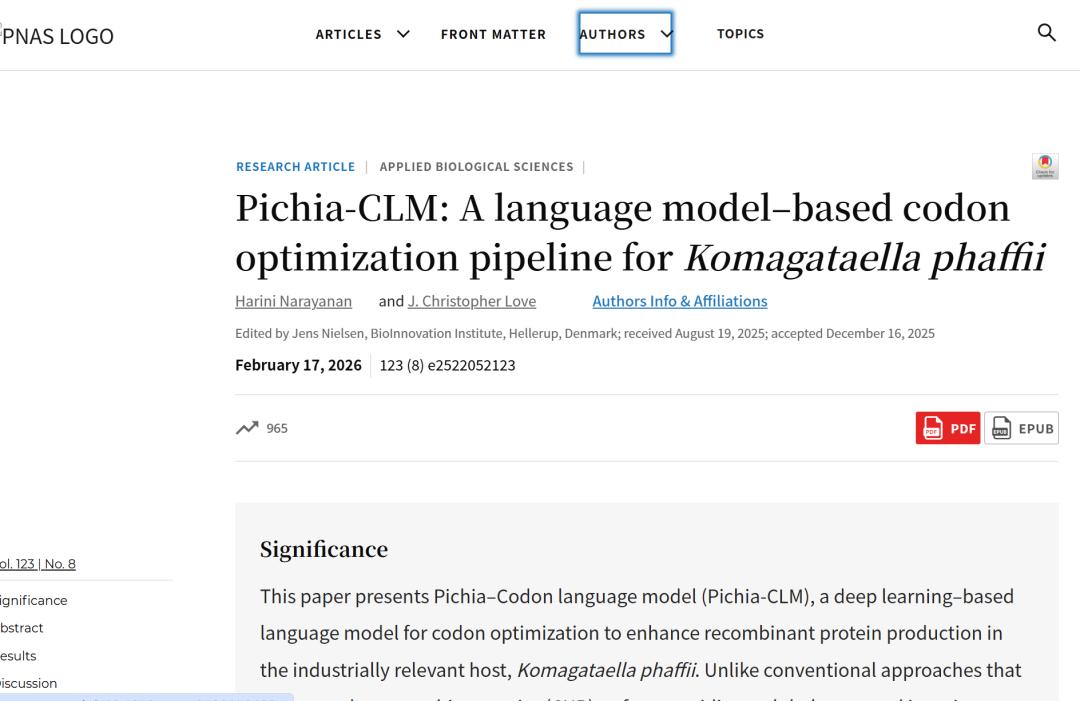 相关研究成果以「Pichia-CLM: A language model–based codon optimization pipeline for Komagataella phaffii」为题,已刊登 PNAS。