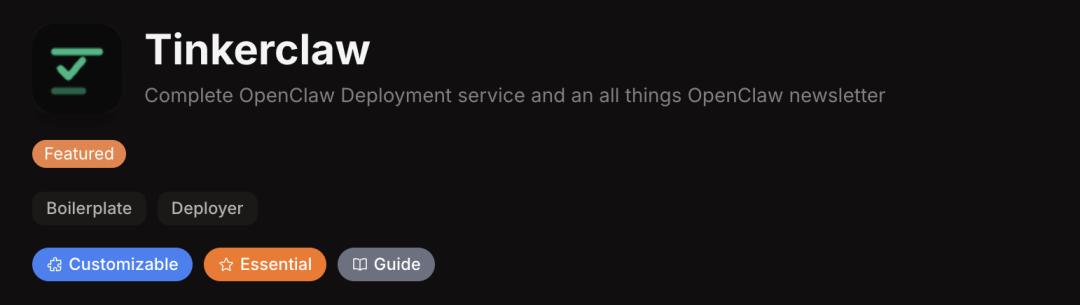 第五位Tinkerclaw,被分类到了Boilerplate、Deployer一栏。