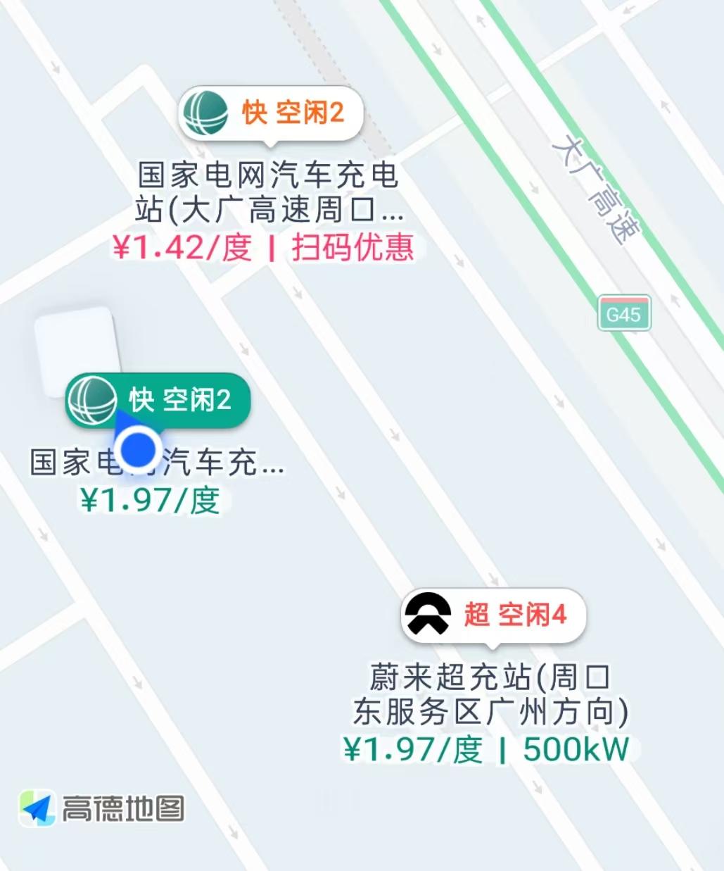 多位车主也表示,高德地图显示没有充电服务,但用百度地图则显示有,开过去一看果然有快充桩。