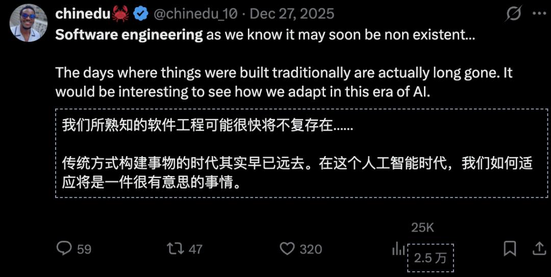 不只SemiAnalysis在说:「软件工程已死。」