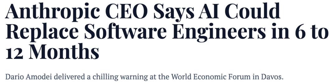 Anthropic的CEO阿莫迪表示:「我们可能还需要6到12 个月,模型才能完全做到软件工程师和全栈工程师所做的事情。」