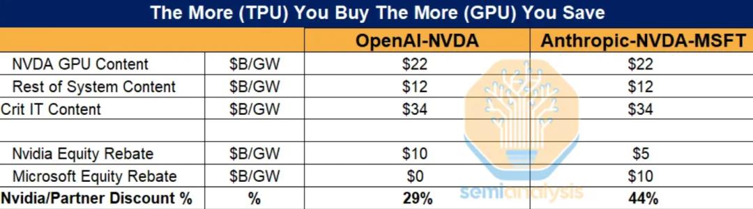 因此,当下大多大模型企业会选择采购TPU+GPU多元算力来缓解成本压力。去年11月,半导体研究机构SemiAnalysis对比大模型公司的采购成本后发现:与OpenAI相比,同时使用TPU与GPU的Anthropic,在与英伟达谈判时拥有更强的议价权。