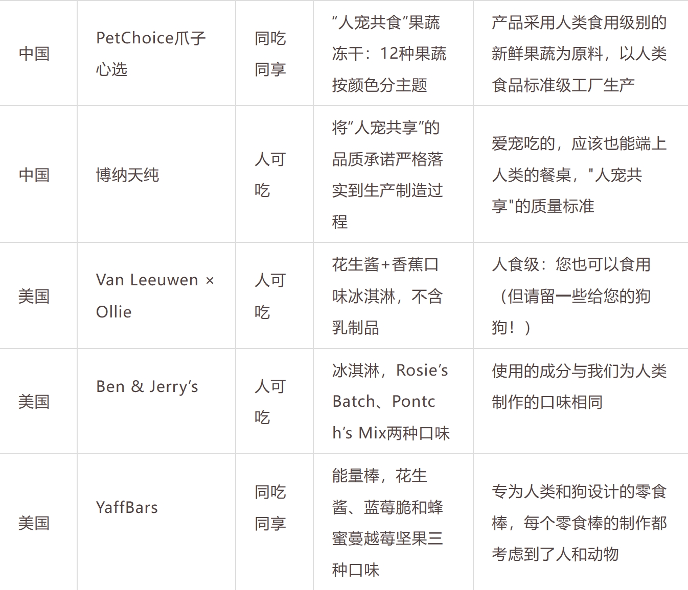 前者在解决的是如何一起吃的问题,后者更像是在宠主挑选产品时,用人也能吃来建立信任、拉开差异。