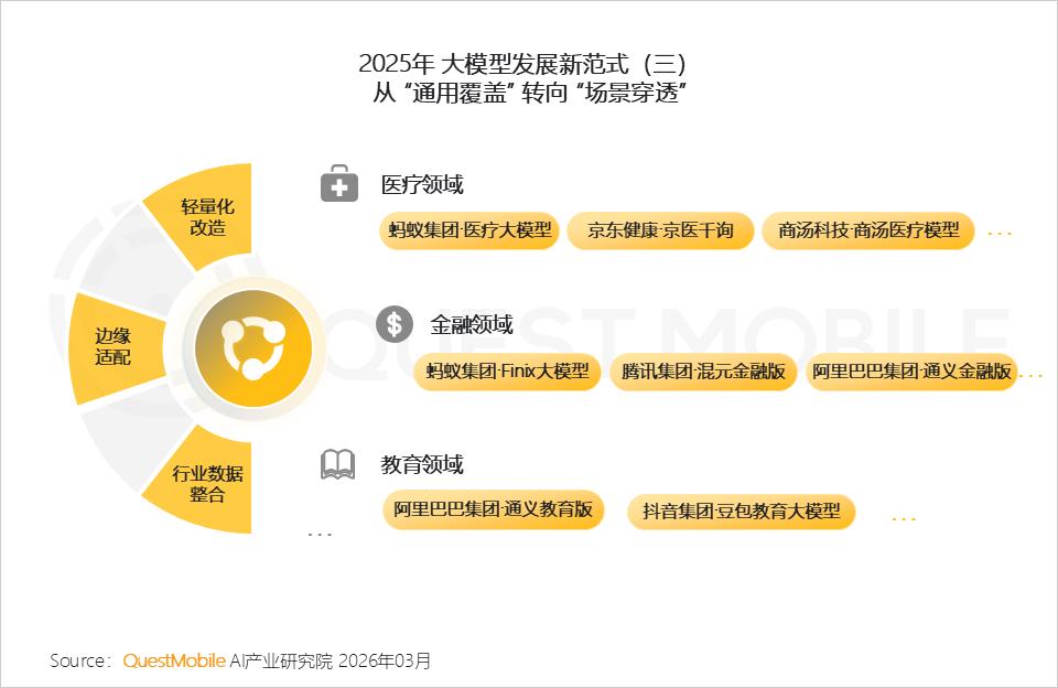 4、打通全域体验后,竞争进一步深入至“场景穿透”;轻量化改造和数据整合让模型最终在医疗、金融等具体行业内实现商业闭环,完成价值落地
