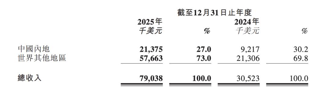 整个 2025 年,MiniMax 海外营收占比进一步提高,海外收入占比从 2024 年的 69.8% 进一步提高至 73%,来自中国内地收入占比从 30.2% 下降至 27%。
