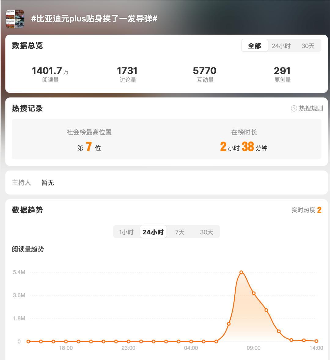 一时间,#比亚迪元plus贴身挨了一发导弹# 冲上热搜!