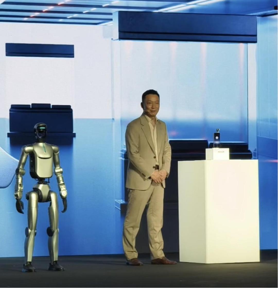 MWC期间,荣耀在全球发布会上正式亮相了旗下首款人形机器人荣耀ROBOT。这款搭载AI控制技术的人形机器人,现场演绎了舞蹈、后空翻等动作,还复刻了太空步,引发不少现场观众和媒体围观。