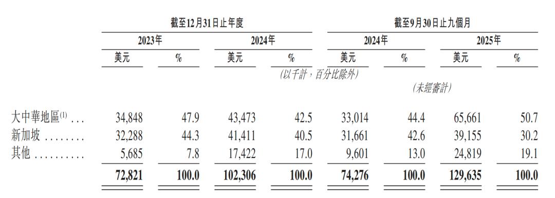 来自大中华区域的客户收入占总收入4-5成,来自新加坡的客户收入占总收入3-4成。
