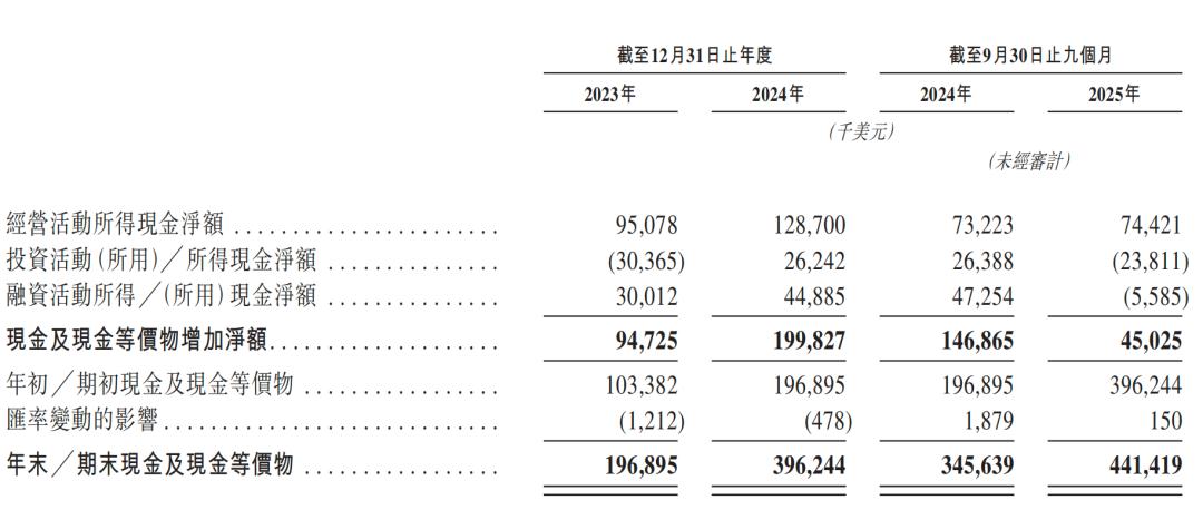 2023年、2024年及2025年前九个月,钛动科技营收为72.82百万美元、102.30百万美元、129.64百万美元,净利润为34.35百万美元、51.00百万美元、55.68百万美元。