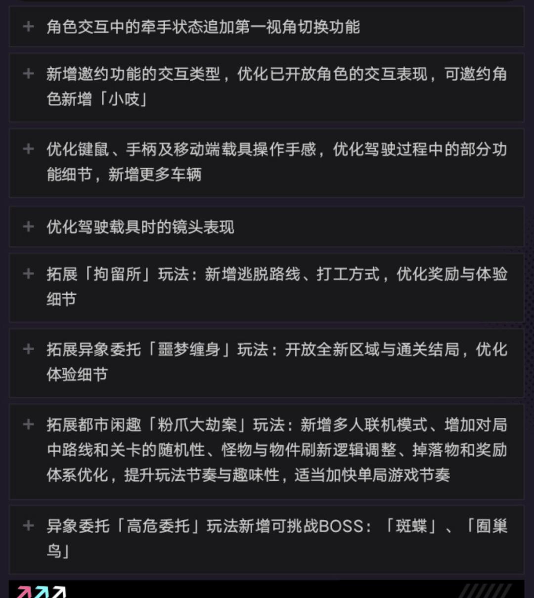 佐证之一,是《异环》宣布公测时间的同时还发布了长达千字篇幅的优化清单。其中提到,团队将在三测用户反馈的基础上推进优化,包括40多个关于系统、玩法、大世界体验、角色、战斗以及剧情的优化事项。