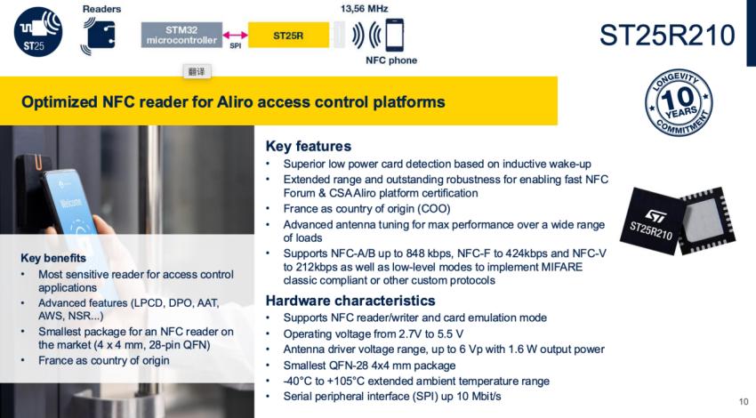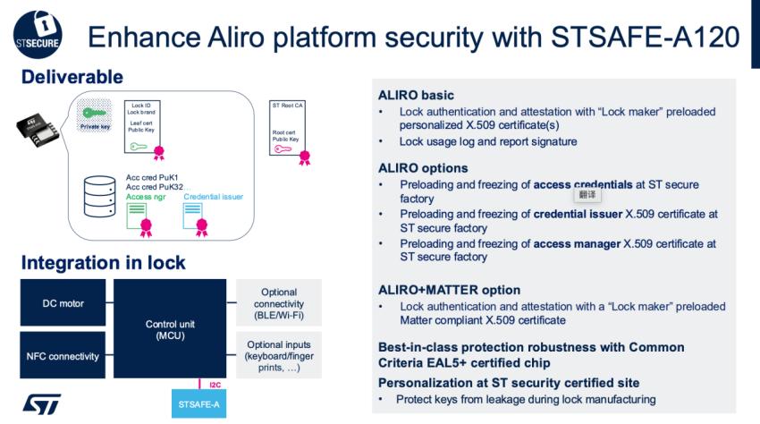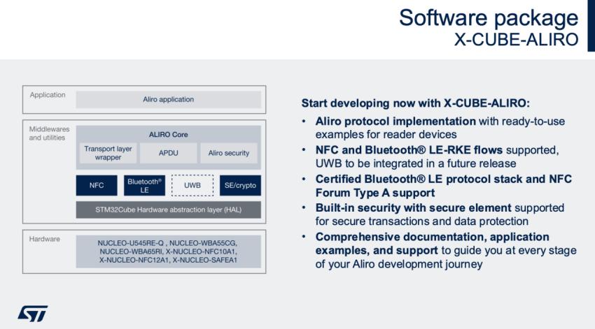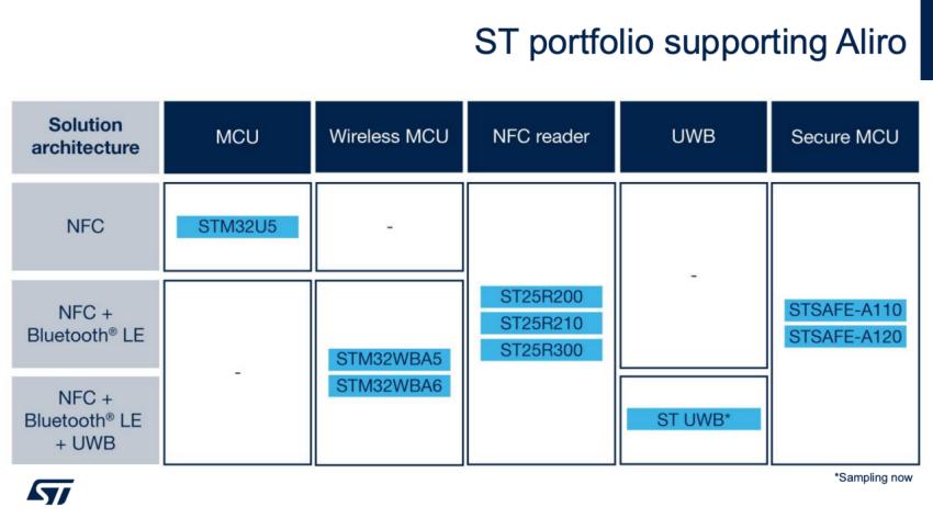 2月27日,在Aliro公布1.0标准后,ST随即发布新闻表示,已准备好为设备制造商提供打造符合Aliro标准产品的一切所需。ST提供完整的连接和安全解决方案组合,支持三种Aliro配置,从仅NFC到NFC+BLE,再到NFC+BLE+UWB,实现免提访问。