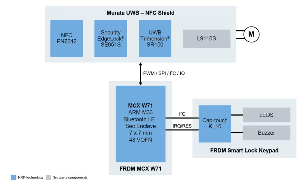 用于调试和锁控工作流程的低功耗蓝牙技术:通过蓝牙技术可对设备进行调试,启动支持UWB体验的测距任务,并与配对的门锁进行通信,从而实现开/关操作;