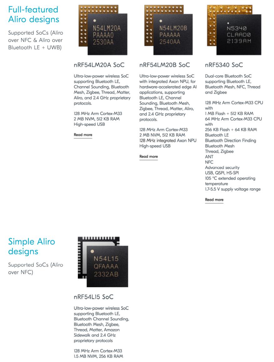 Nordic也专门为Aliro建设了单独的页面,同时为了补全UWB,Nordic选择和Qorvo合作。