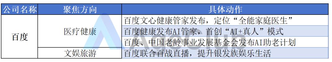 百度的布局高度围绕其AI技术核心优势,主要集中在“医疗健康”和“文娱旅游”,旨在打造AI赋能的个人健康管家与娱乐体验。