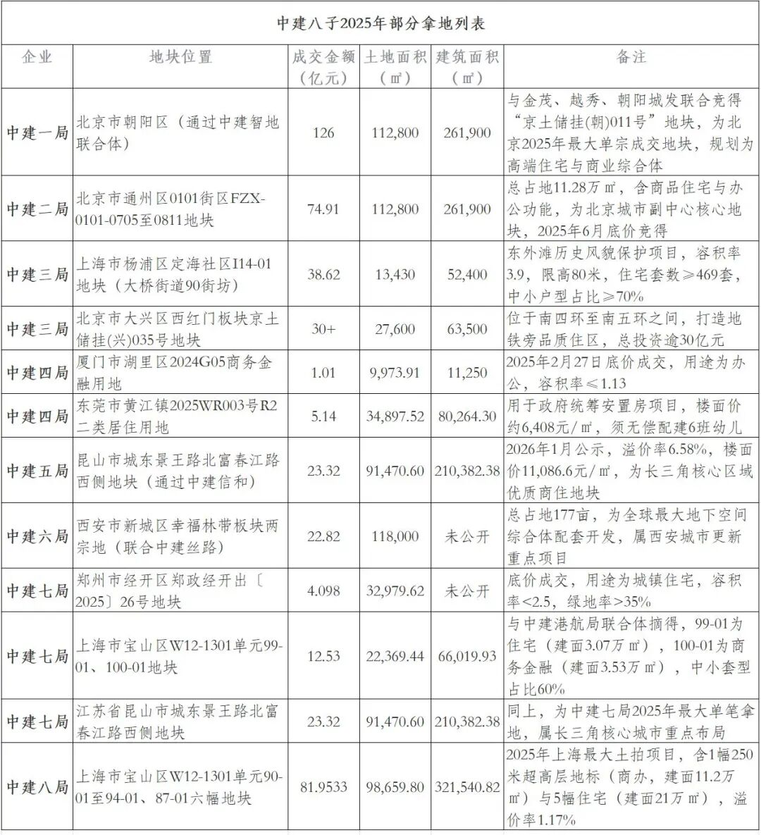 观点新媒体观察到,中建系其他地产公司对于战略区域或是投资布局没有那么明显的界限,而是对于核心城市核心地块表现出很强的拿地意愿。