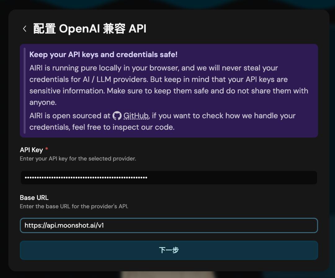这里要先用密钥接入API。