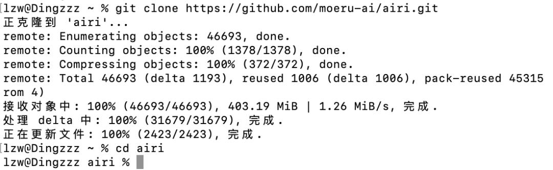 等它下载完,再cd airi进入项目目录。