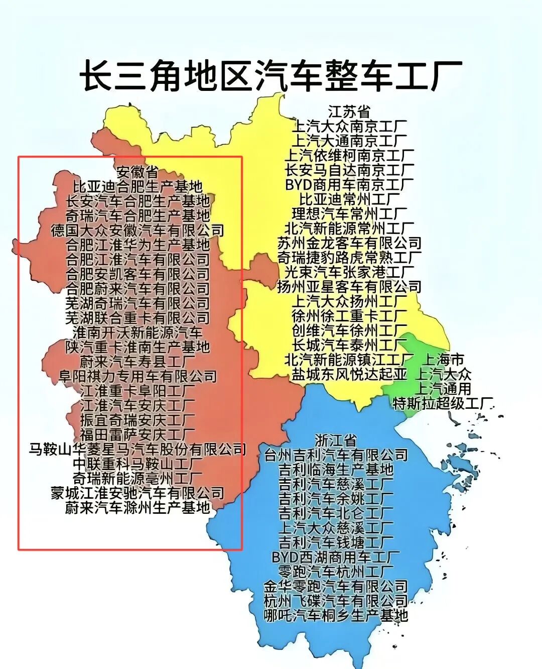 图/长三角地区汽车整车工厂盘点 来源/互联网 新能源观截图