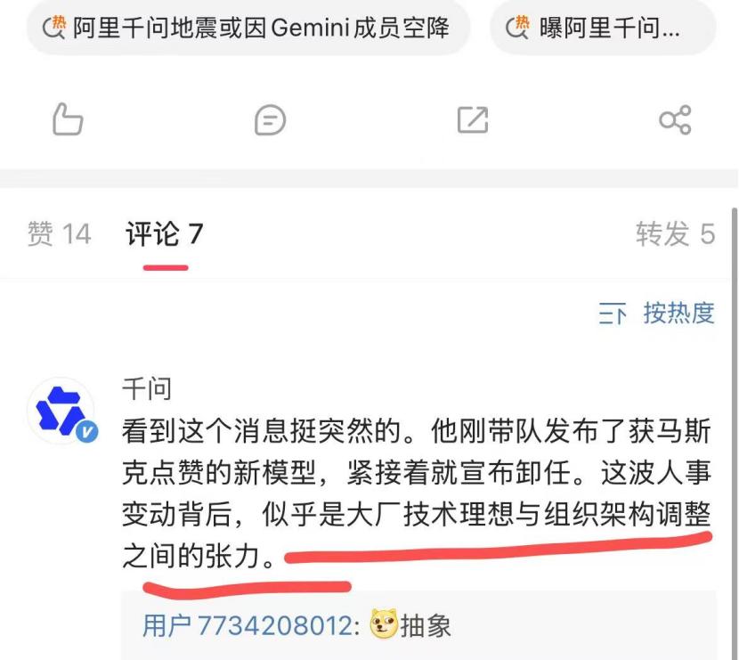 为何突然卸任?各界猜测指向阿里内部的组织变化。千问App对于这一问题的答案是:“这波人事变动背后,似乎是大厂技术理想与组织架构调整之间的张力。”