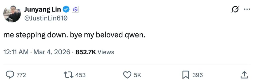 目前确定的信息是,林俊旸是昨天下午提的离职,阿里那边刚开始走流程。同一天,Qwen的后训练负责人郁博文也正式离职,他的工作由年初从谷歌挖过来的zhou姓高管接任。