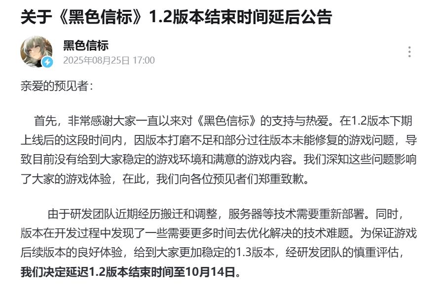 除了商业化以外,游戏国服开服后也是风波不断。去年8月份,《黑色信标》发布公告称由于研发团队近期经历搬迁和调整,宣布延迟1.2版本结束时间至10月14日,游戏从8月30日起便开始了复刻活动,随后官方账号也长时间停止了更新。
