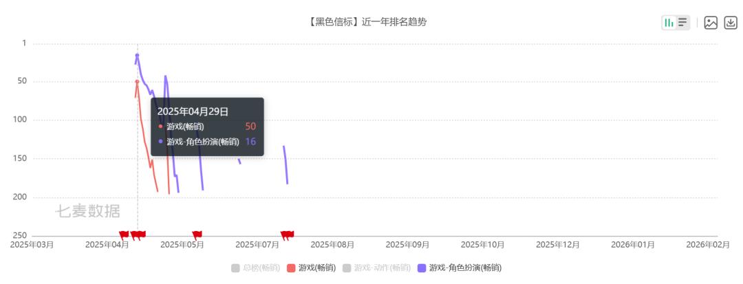 根据七麦数据显示,《黑色信标》国服上线后,畅销榜最高曾到过第50名,然而开服不到一个月便跌出了畅销榜前200,后续也再无入榜情况。