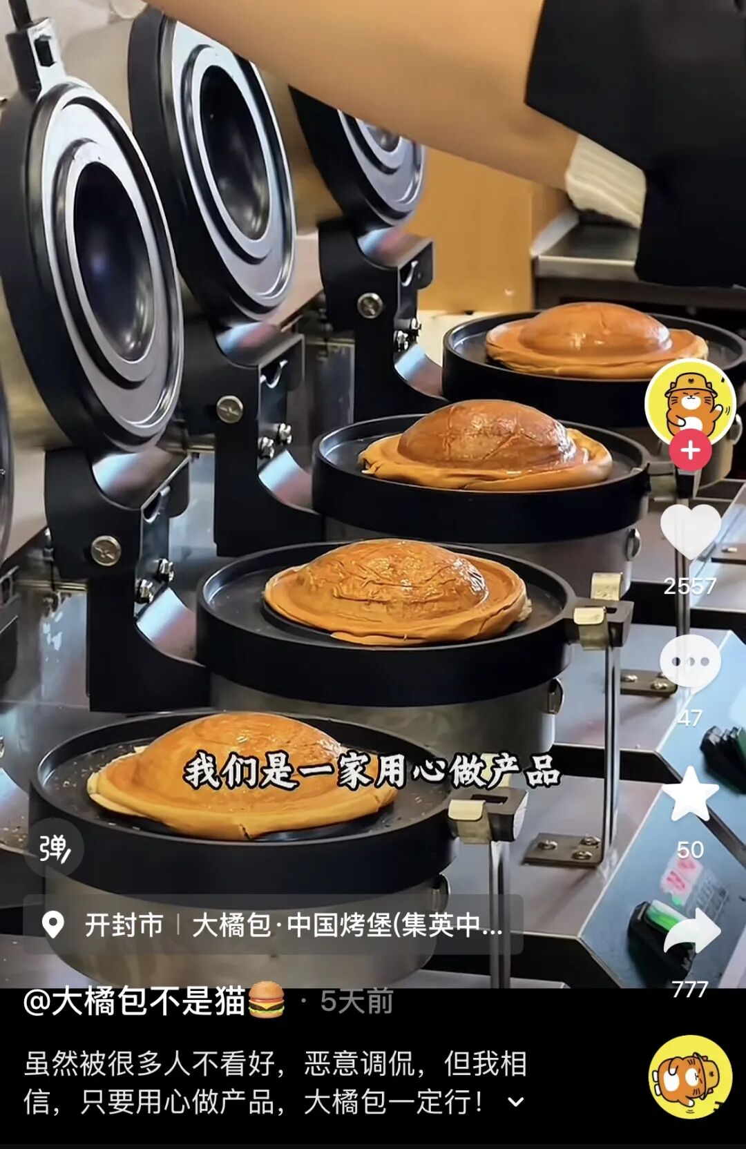 做大橘包,要用特制的压烤炉,市面上一般没有二手品,店家得专门从供应商手里拿货。很多人其实不知道什么是大橘包,如果你要打通更广泛的人群,得做足够的营销工作。不然,顾客看到中国烤堡,还以为是塔斯汀的山寨版。
