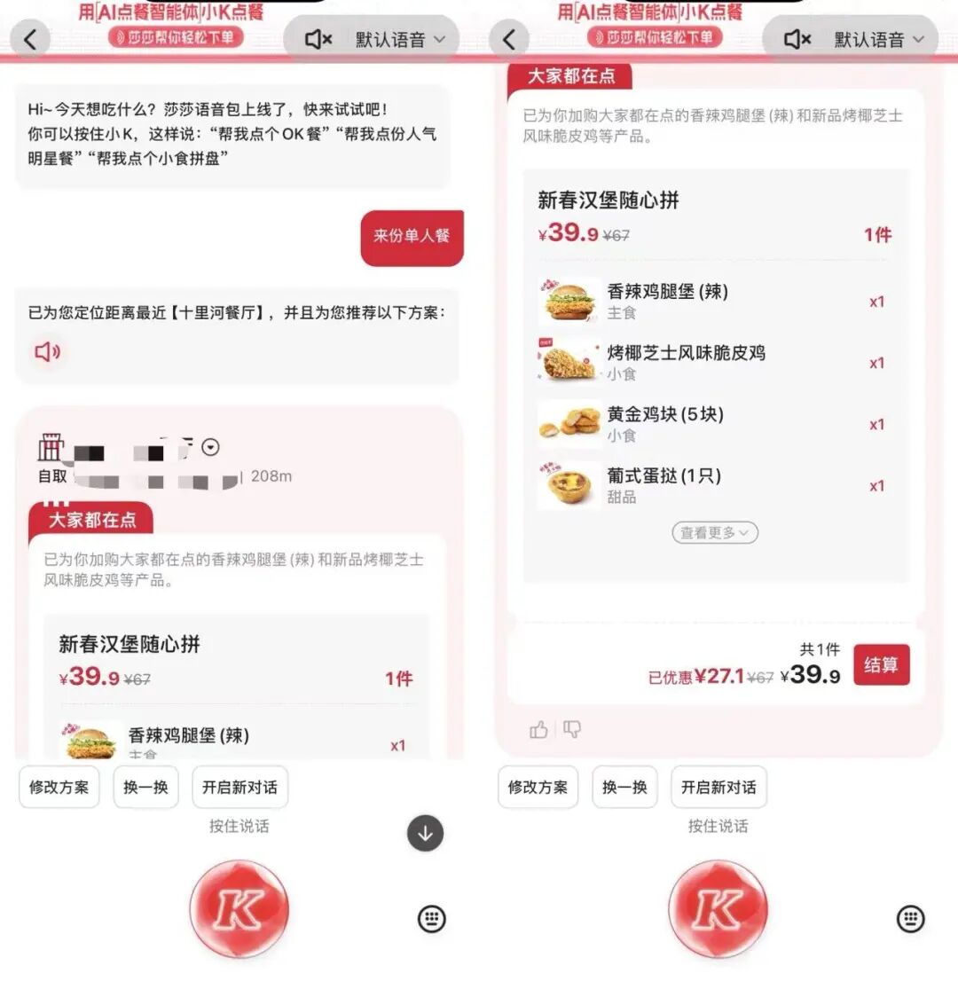 如今,百胜中国已经拥有庞大的线下网络,包括超1.2万家肯德基和4000多家必胜客,且还在进一步数字化。近期,肯德基APP接入千问,用户可以借助AI智能点餐助手“小K”完成“一句话点餐”。值得关注的是,这项功能,仍然是APP所独有。