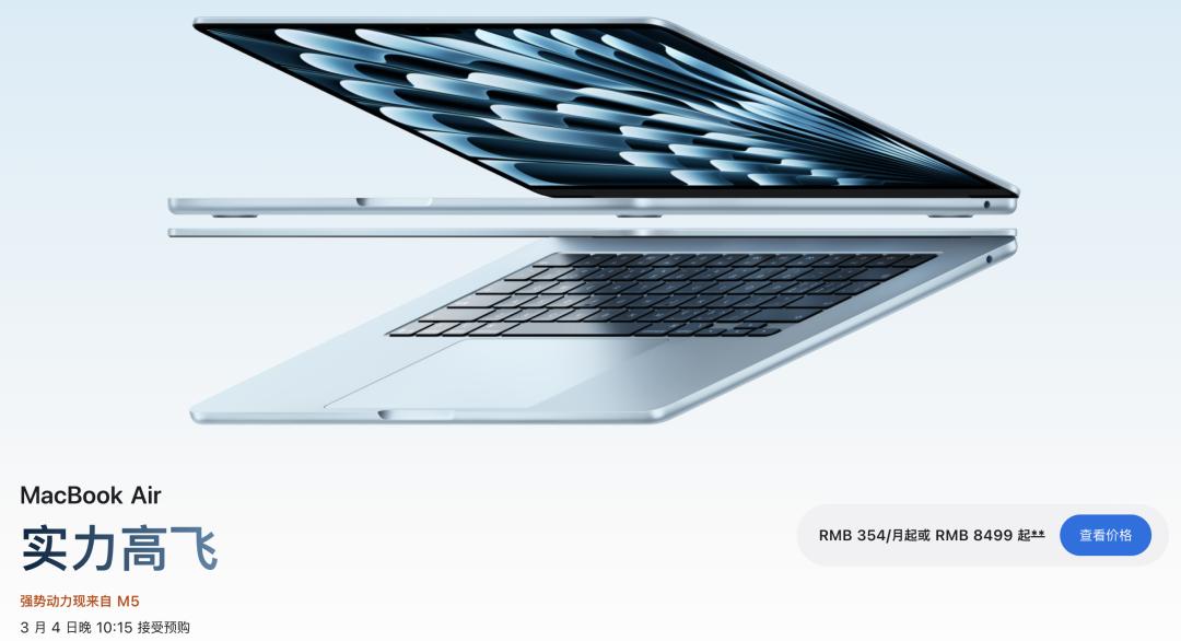 大半年没动静的 MacBook Air 直接跨代升级到了 M5 芯片。
