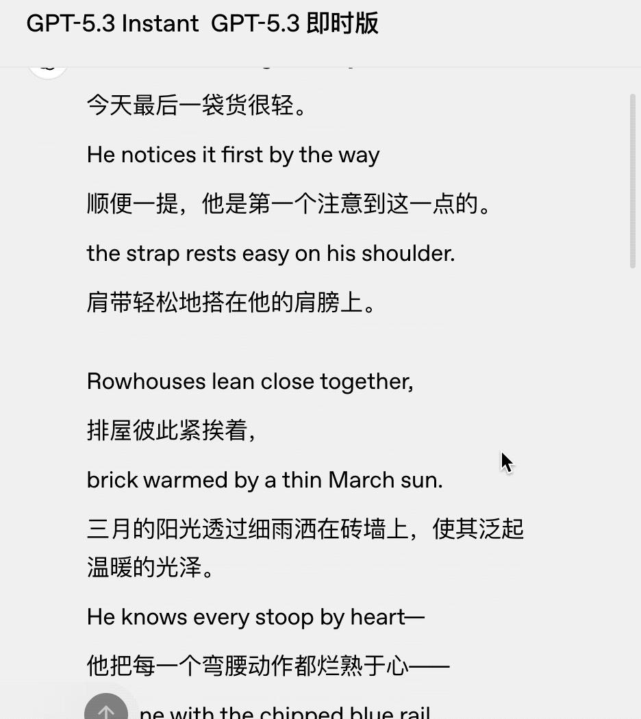 此外,5.3 Instant的升级还有一个亮点,那就是写作风格更细腻了。