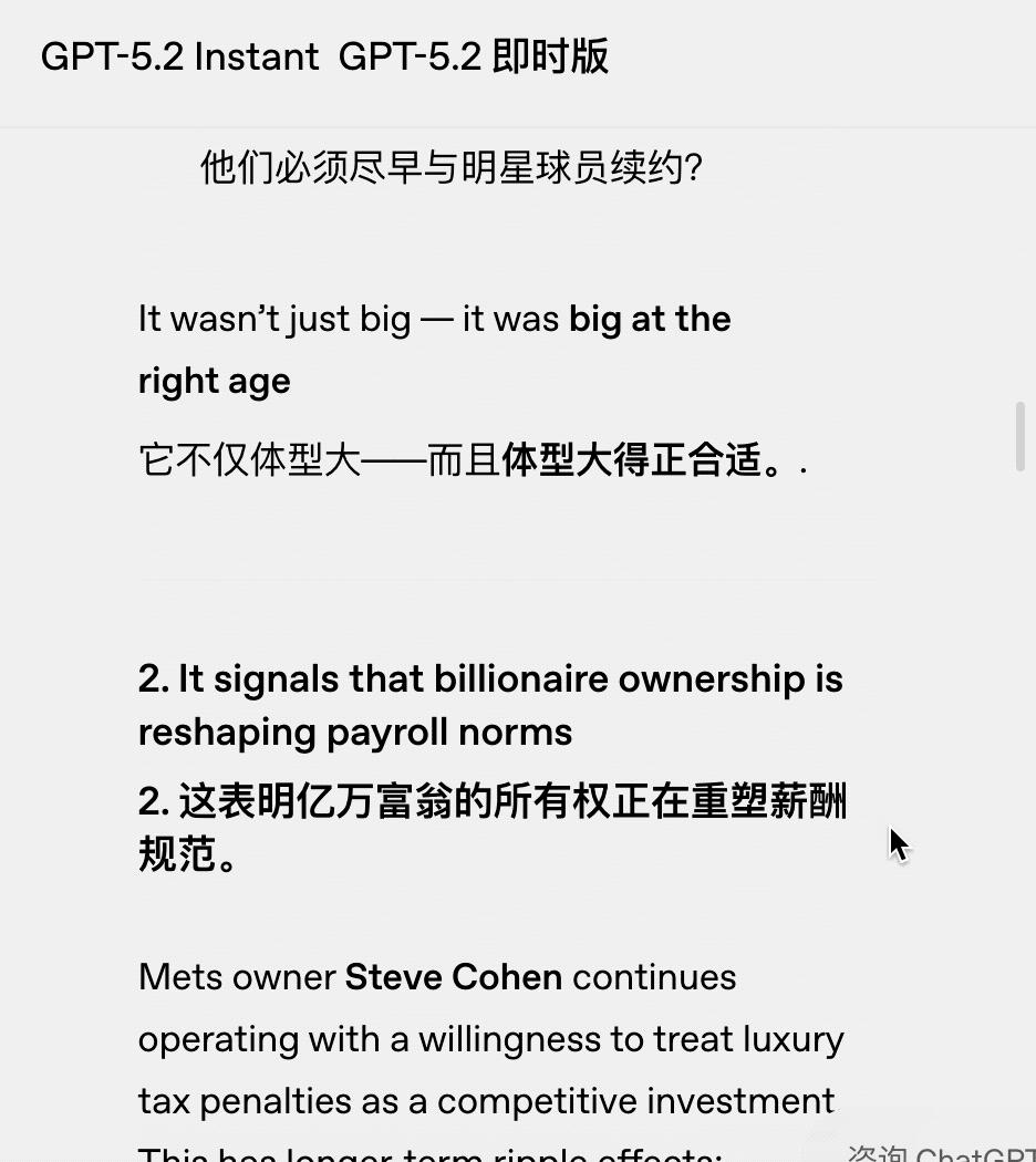 新模型的回复则时效性更强:它准确识别出了最近一个休赛期的球员变动,还结合了联盟的大趋势(如人才集中化和薪资差距拉大)、迫在眉睫的劳资协议 (CBA) 以及停摆危机等背景进行了分析。